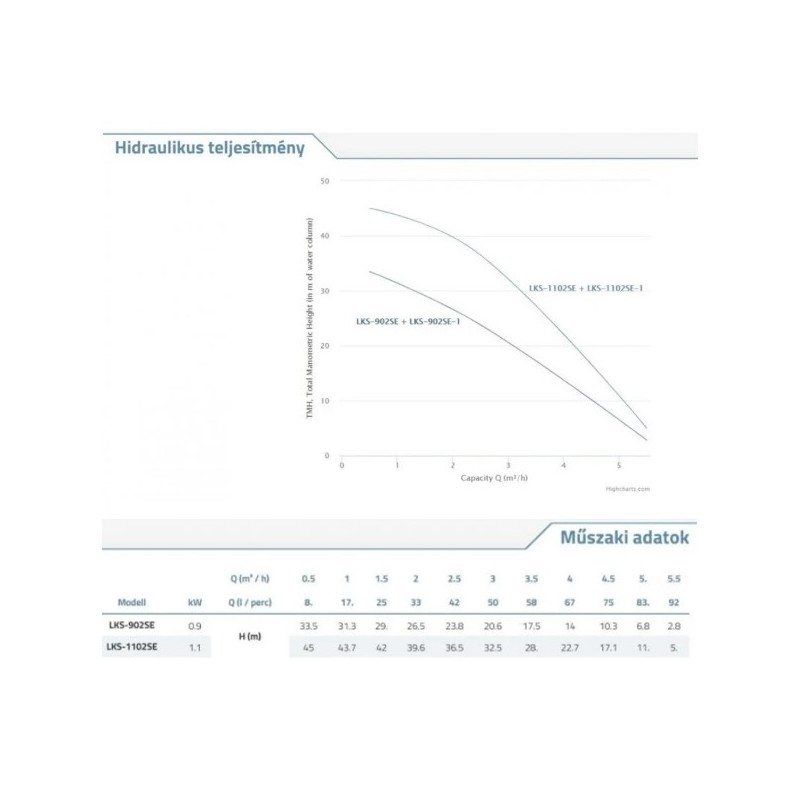 - Max vízszállítás: 75 l / min