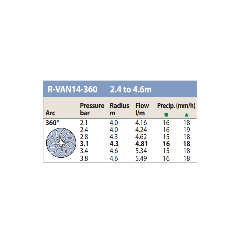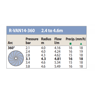 - Szórási, öntözési távolság, sugár: 1,5-9,1 m